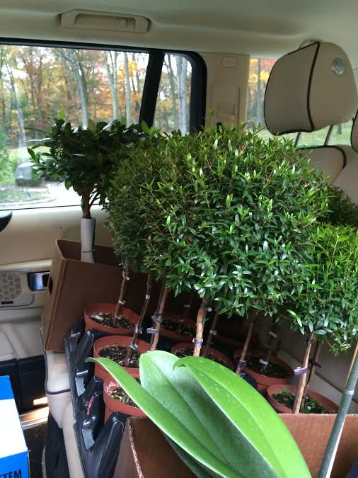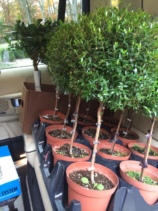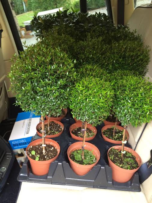 This guy understood that topiary-mania needs urgent attention! So fast forward a few days I was put in touch with another dealer, who was kind enough to meet with me despite the fact that I was not going to be buying a truckload of topiaries. I did however buy a carload:) Enter Greg the myrtle topiary whisperer. I happily loaded up the car, quest accomplished!