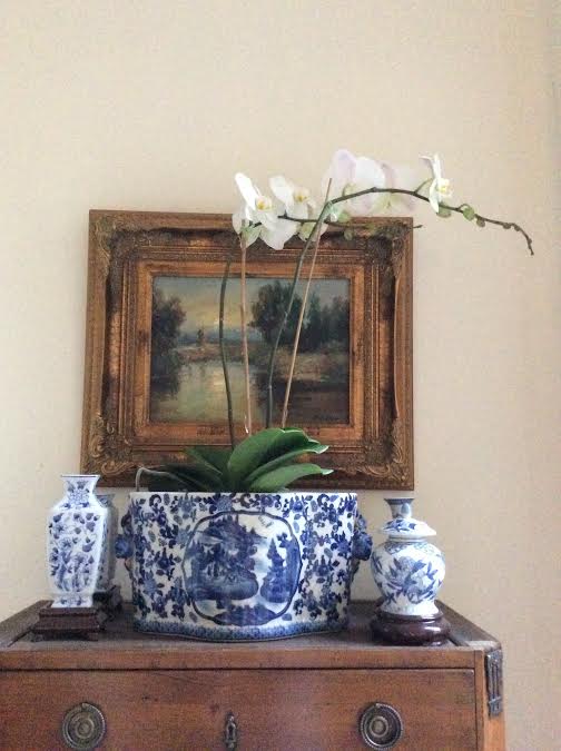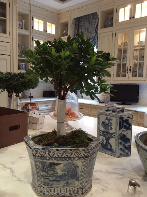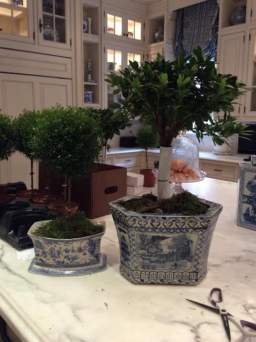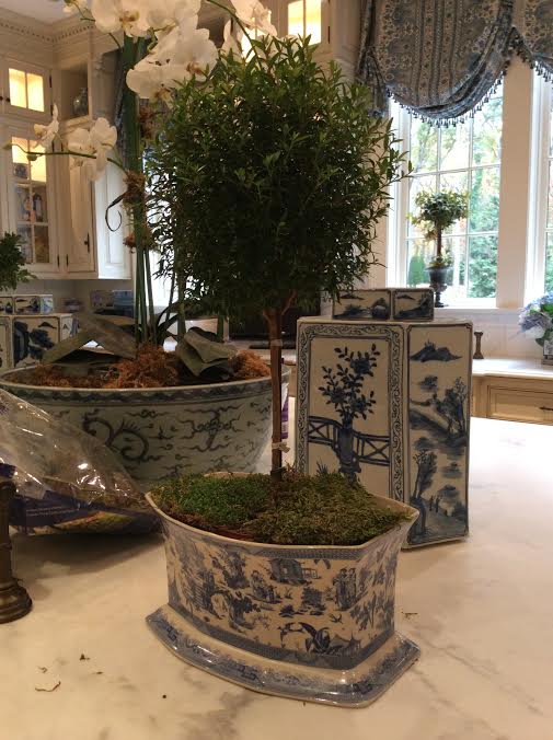 I came home and started to panic about what I was going to do with all of these topiaries, how quickly could I dispense them around the house to look like they had always been there so my hubs would not walk in wondering if I have lost my mind, feeling like he lives inside a nursery (bad enough he feels like we live in a blue and white porcelain factory)!