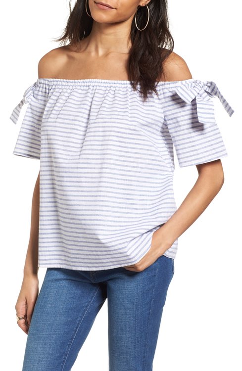 3 OFF SHOULDER TOPS Loving this new style…so fresh and pretty, and they just scream chic summer dressing. I had to give in and buy a few to jumpstart my summer wardrobe. You dont’ have to wear them completely off the shoulder but these are all beautiful looks for warm weather dressing.