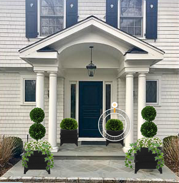 So happy the Provence planters are coming back in about 2 weeks! I love giving “Provence planter makeovers”. This is a recent one when a customer needed some direction on her front door. A beautiful home that deserved an equally beautiful front door welcome. The planters presently there were way too small and actually dwarfed everything around it. When it doubt go a little bigger, not smaller.