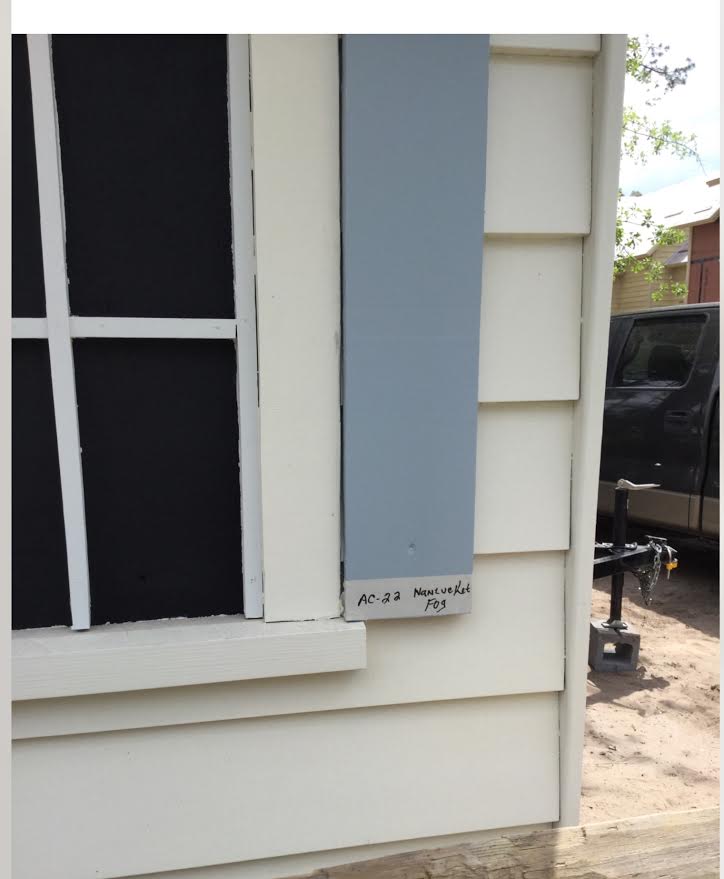 And here it is on a piece of wood to get an idea of how it will look on a shutter, love it! Its a true blue/gray a little deeper than some of the others but I took. many’s advice about the strong fading sun and think this has just enough contrast.