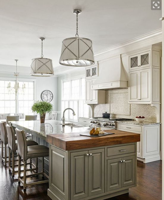 The kitchen which opens to the great room will have a wide island and I have always really ilked the look of hanging shade, think it brings a softness to a room of wood and marble, it adds a nice touch to all the hard edges. So leaning toward this look for sure but could end up doing a lantern as well, still mulling it all over. Here are a few examples-