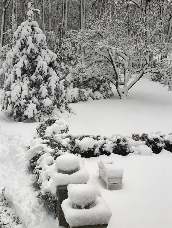 Really beautiful “snow-to-graphs”. A magical scene in and around your home. Seeing the flowers made my heart leap for Spring. Am already thinking about how I am going to set my table using the b&w, Pagoda melamine on my deck. Can’t wait to see the finished PB home. It is a textbook in selecting great finishes. Have a nice weekend, Tina.