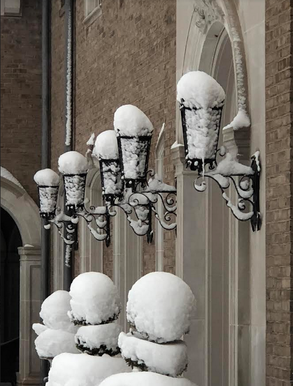 I live in Michigan and we see this stuff all the time, but it was hard to view the amount of snow on your umbrella! The picture of the snowy lanterns look like our Michigan State University! I love your photos!