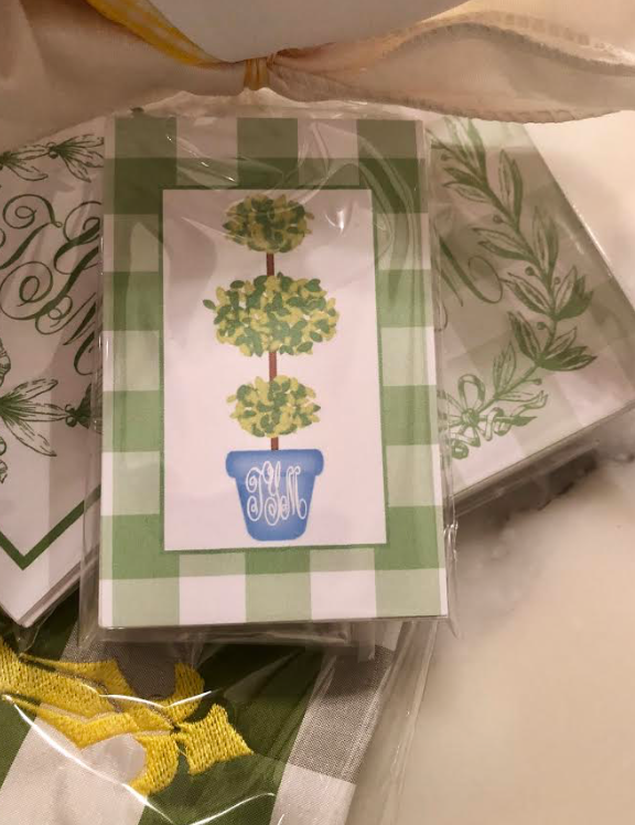 Love getting in goody packages from the amazing LB Originals….the best source for all things monogrammed. How darling is this buffalo check makeup bag and small monogrammed note cards? Love!