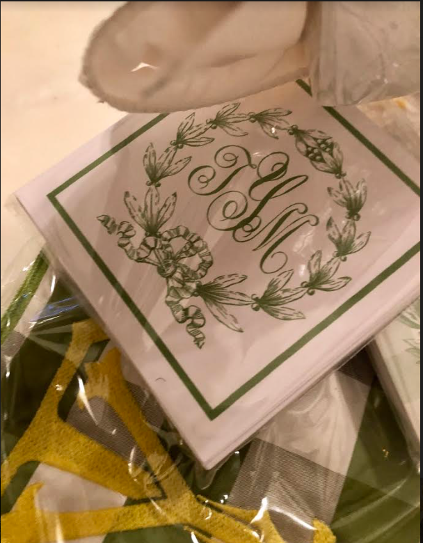 Every time we get in a new batch of monogrammed napkins, I want to order a set for myself…love seeing all the combinations of fonts and colors