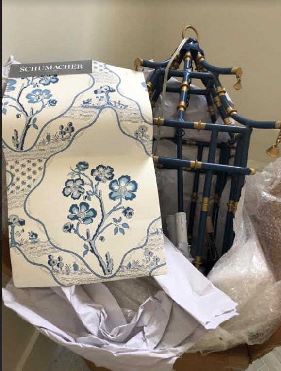 Decided on this paper for one powder room along with my navy lantern (from my shop)
