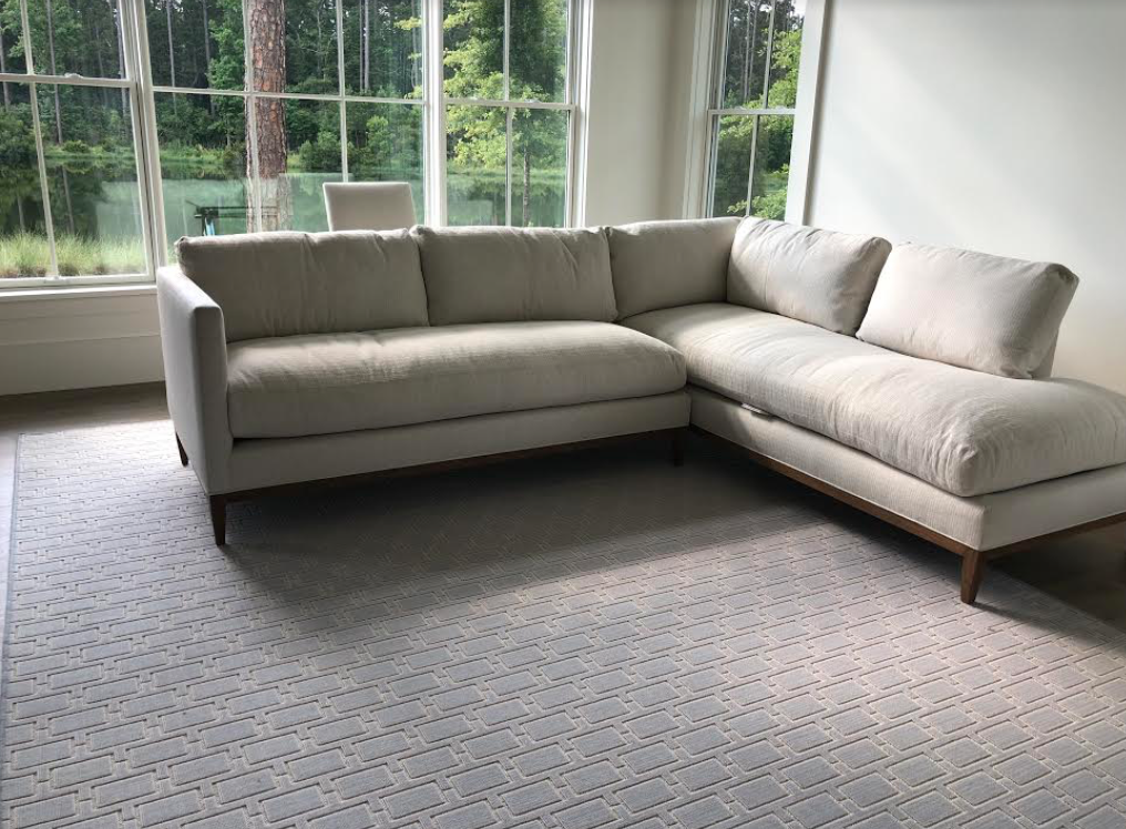Pretty smaller sectional for study (Vanguard) and carpet I had made as an area rug from Rosecore (part of Stanton carpets)