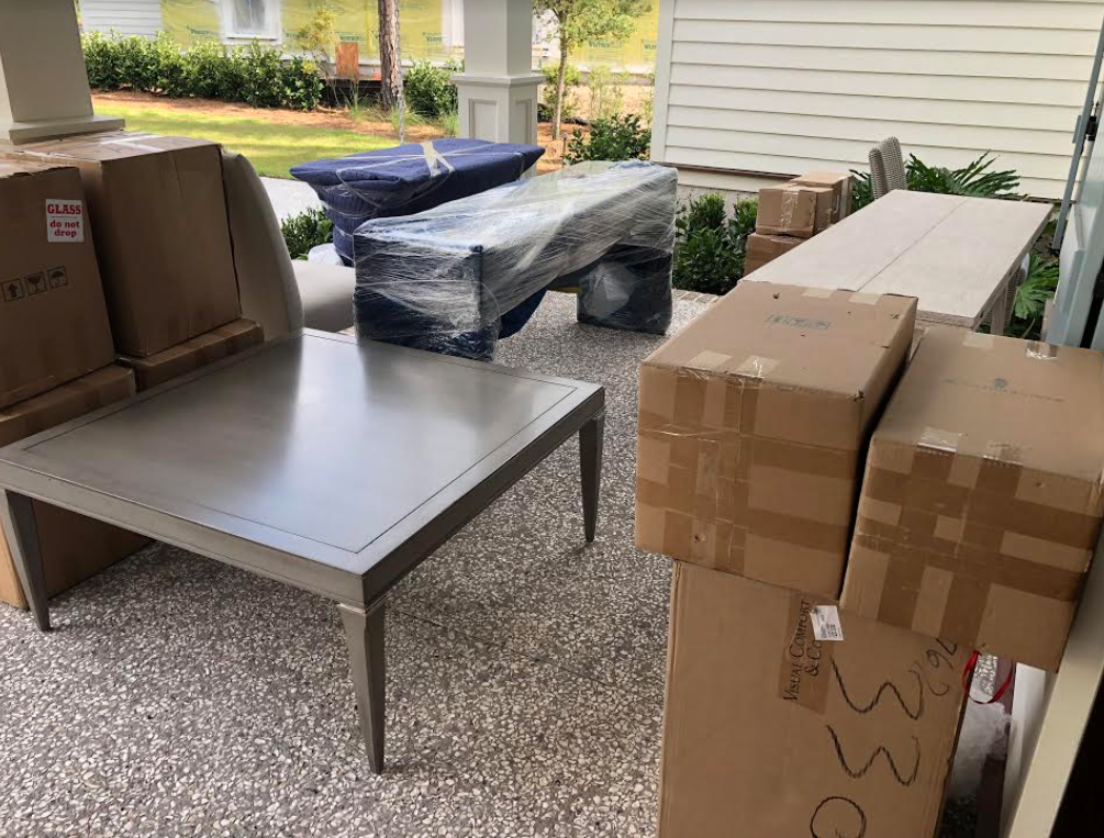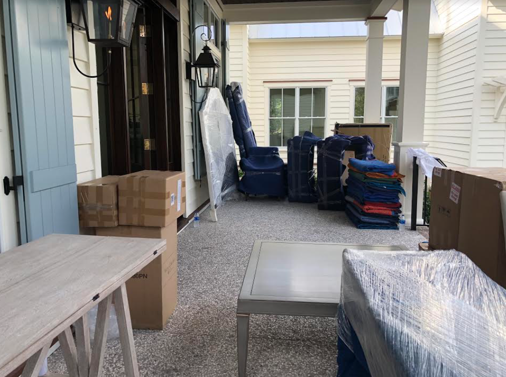 The front porch served as a temporary staging area:)