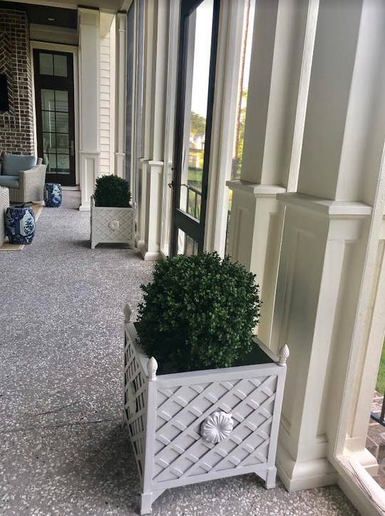 Hi Tina, we also have a part time home at PB, absolutely love it!your home is beautiful, such perfection! We live around the corner from you (Game Land) same architect too, anyway I’d like to order planters, just not sure what size since I’m back in CA. Do you have Medium or Large on your front porch? Also what size on back porch? Do you sell the boxwoods? Thanks in advance!