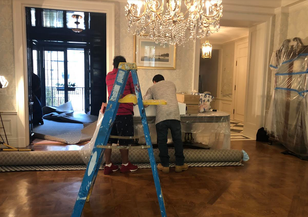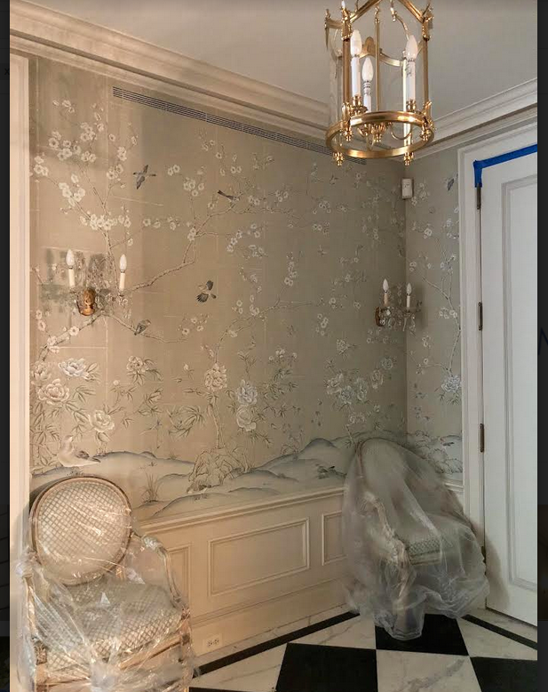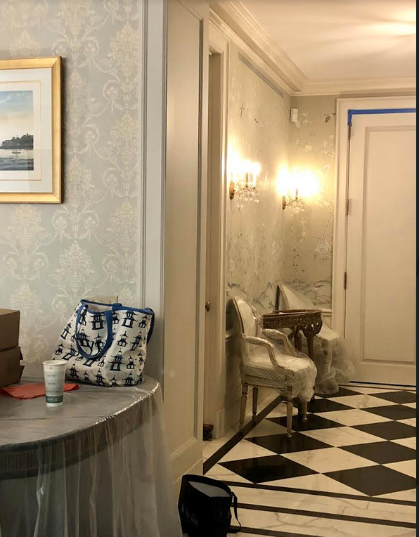 WOW! NYC Project is outstanding. Your work is incredible. That library with the that “Navy Lacquer” is impecable Tina, and those chairs in the foyer; with the black/white marble floors; set off by the beautiful chinoiserie panels. What a gorgeous apartment. When can I move in? Can’t wait to to see the furniture and the finished product. You must show pics. Thank You for sending us views through your lens. So enjoyed. Happy weekend, Tina!