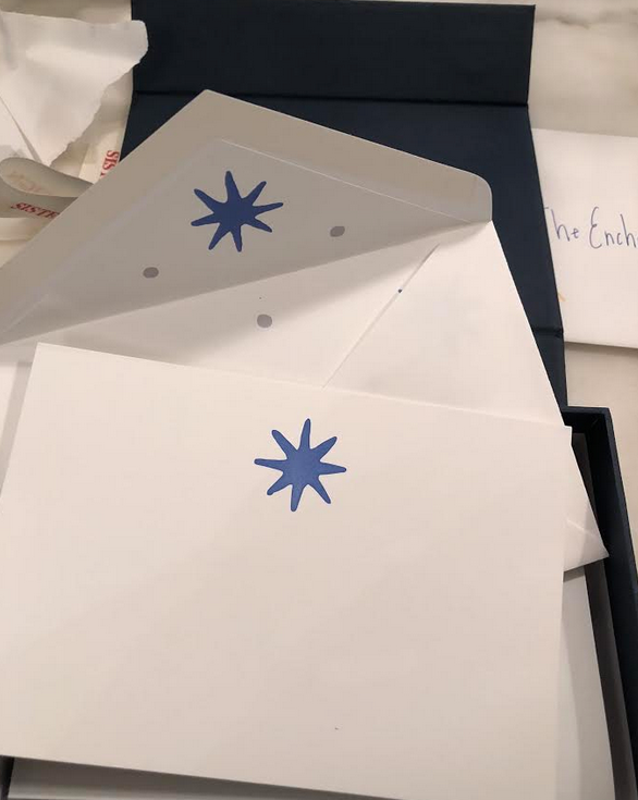 Got this gorgeous box of exquisite stationery on super heavy card stock from Sister Parish featuring a design from Dempsey and Carroll