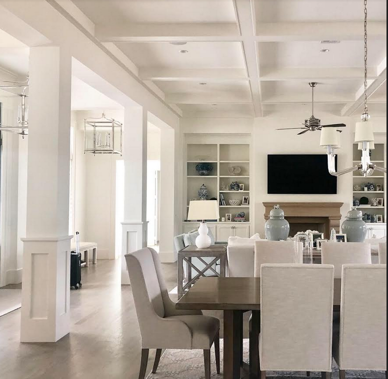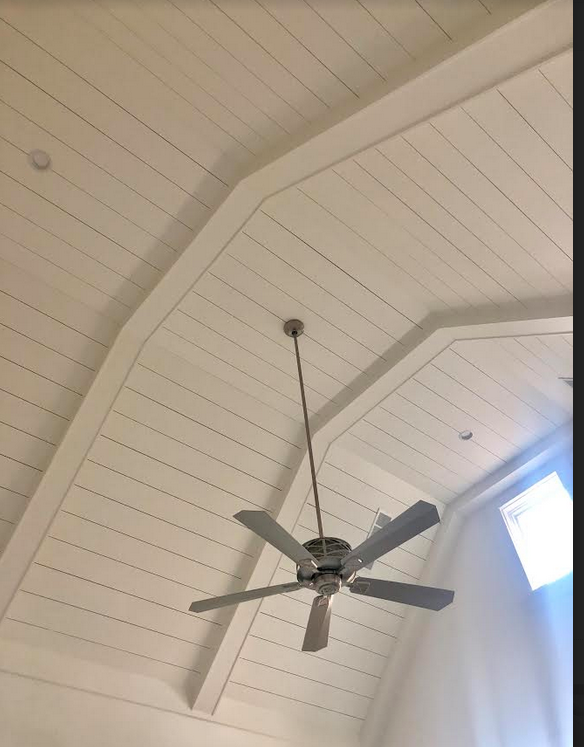 It feels so airy and lofty, love the ceiling detail and realty like having a fan!