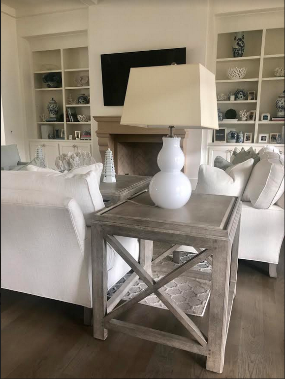 We got in our pretty end tables from Chaddock Furniture (matches coffee table)