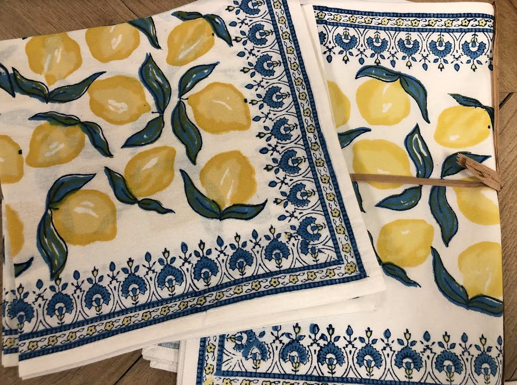 7B Lemon handblocked cotton napkins 20″ and 4 lemon placemats