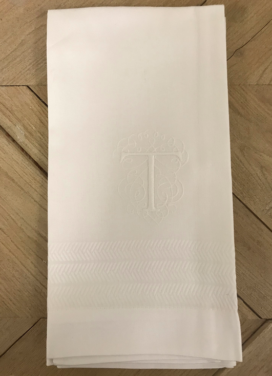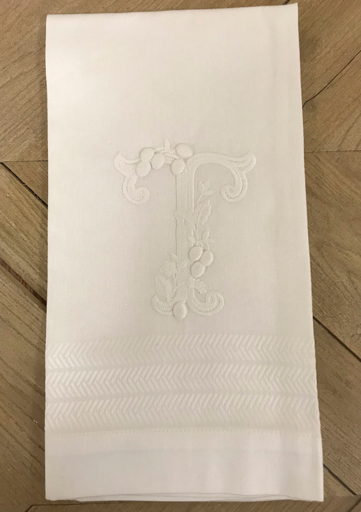 ITEM 19A. SOLD A beautiful Portuguese linen oversized towel with embossed large initial “T” $15.00