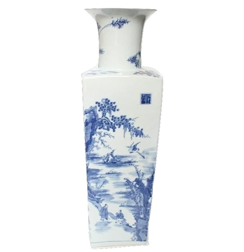 2B SOLD Stunning square vase, Measures 15″ tall by about 6″ at the widest point $90.00