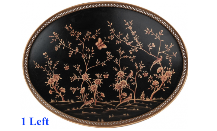 12B Last one of these fabulous oversized black tole trays, One left of each tray, one ivory/gold and one black/gold. Measures 25″ x 18″ x 1.5″$110.00