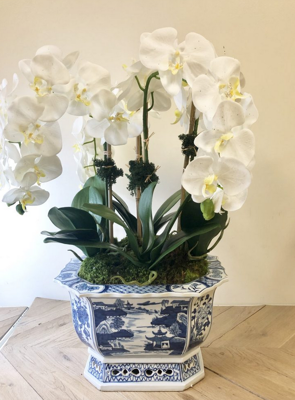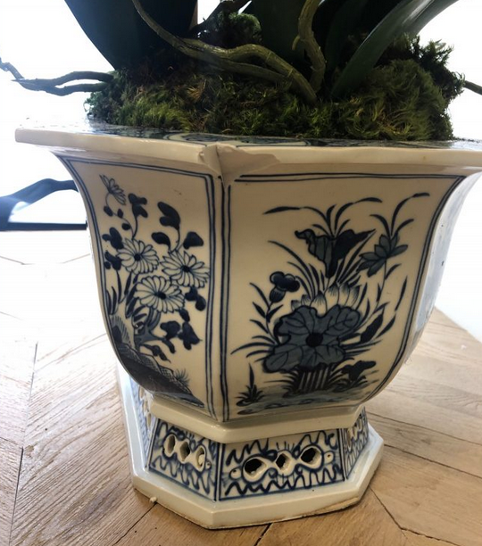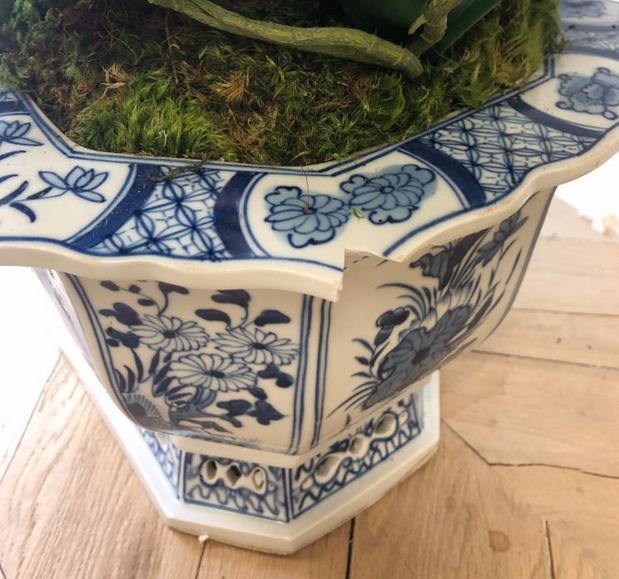 ITEM 22 This magnificent for stem beauty is a showstopper unfortunately there are two small chips on the planter however depending upon how you will use it this might work for you well if you are placing it up against a wall say on a console or chest- from the front you do not see the chips