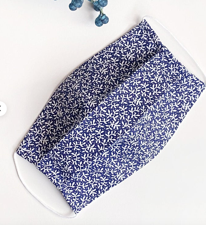 Blue and white face masks? Why ever not? Make a fashion statement and coordinate with spring clothes — not that anyone else will notice.