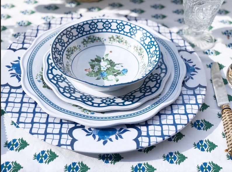 Our pagoda charger with the green/blue melamine set