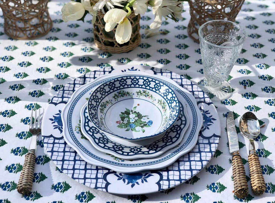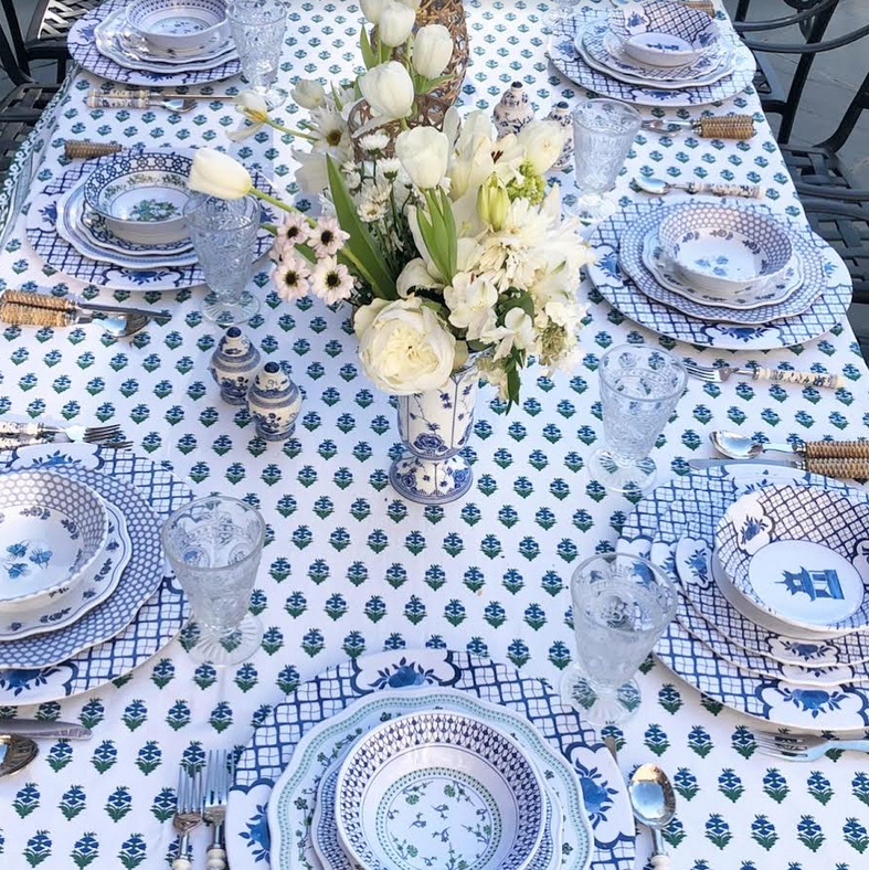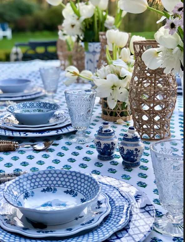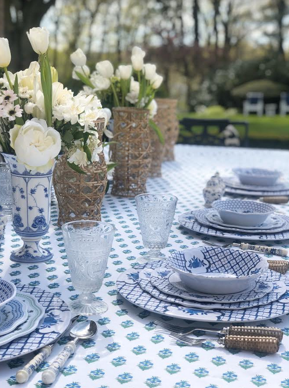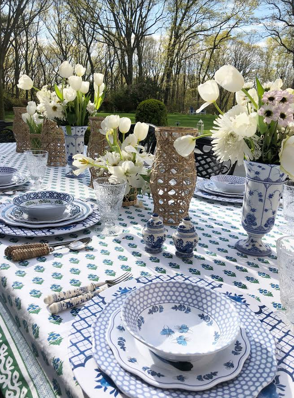 Love your table settings. Your Blue and White Charger Plates go beautifully with all your patterns. Great job!