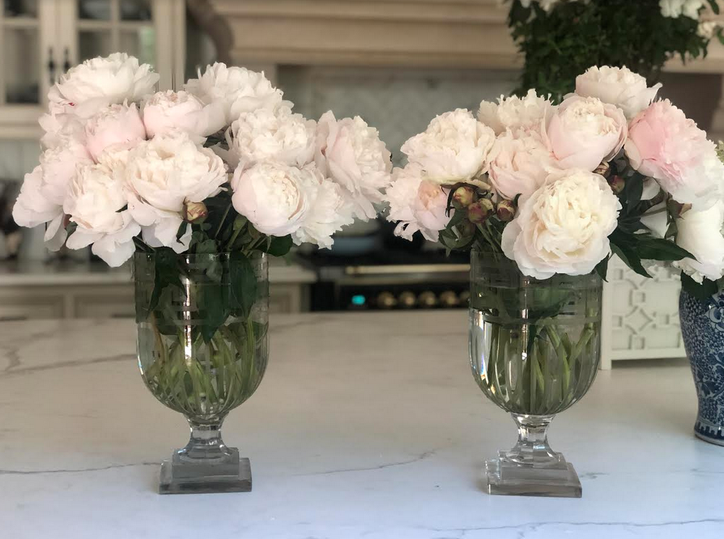 ???Gorgeous, stunning, perfection❣️. Peonies are my most favorite flower…. I love them so much and the joy I feel looking at them and burying my face in them and inhaling their delicious fragrance. Yours are beautiful and the vases and hurricane vases are wonderful. I used a deep red glass goblet shaped hUricane to put my pink Sarah Bernhardts in them, they were beautiful… thanks for the pictures❣️