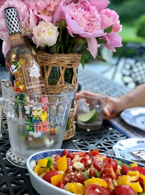 I have to ask you if you would share your recipe for the beautiful salad pictured with the lovely bottle of wine. Looks like summer on a plate.
