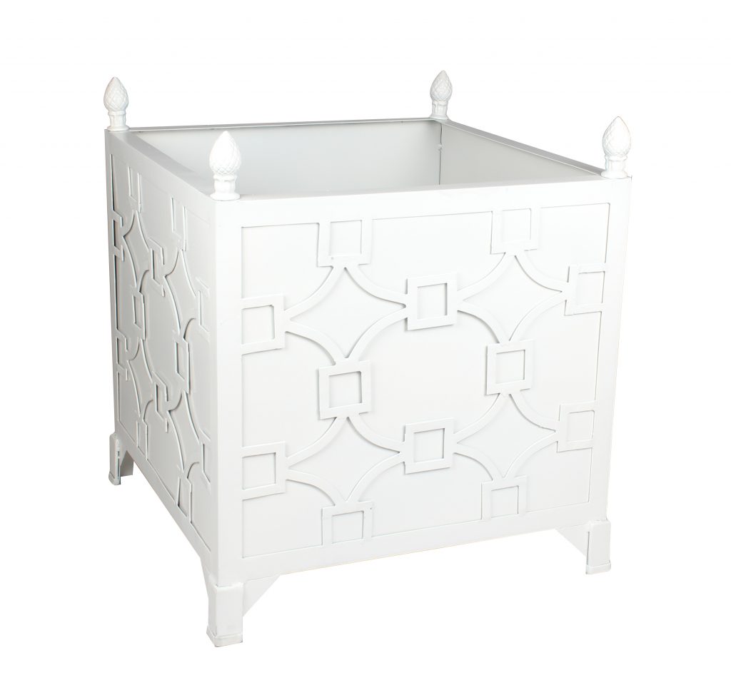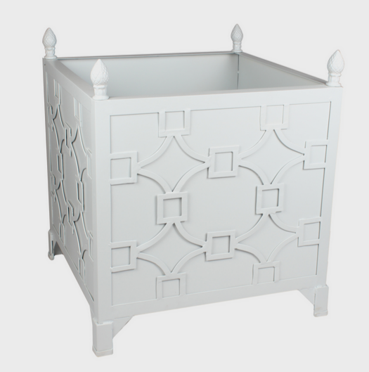 ITEM 8. We are almost sold out of our beautiful fretwork planters, these were a fabulous hit and we are down to just the last 6 or so. A super stylish metal Provence box planter which includes finials and four drilled holes. If these will be outside under the elements year round we strongly suggest applying a really good sealer. Great for indoor or outdoor use. A steal!