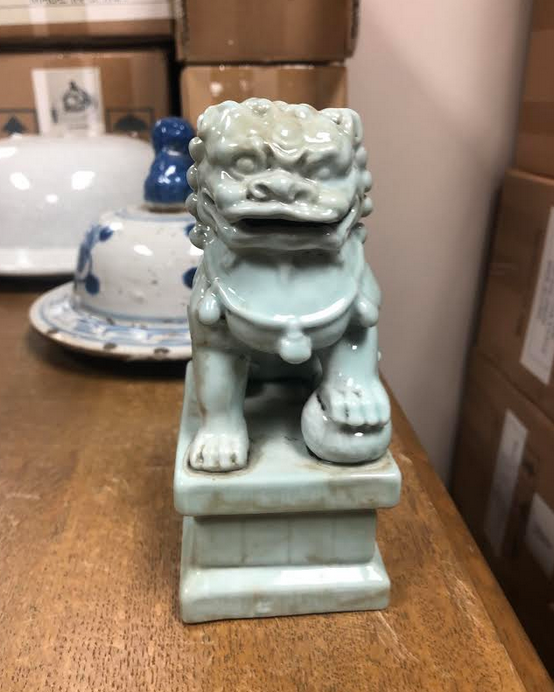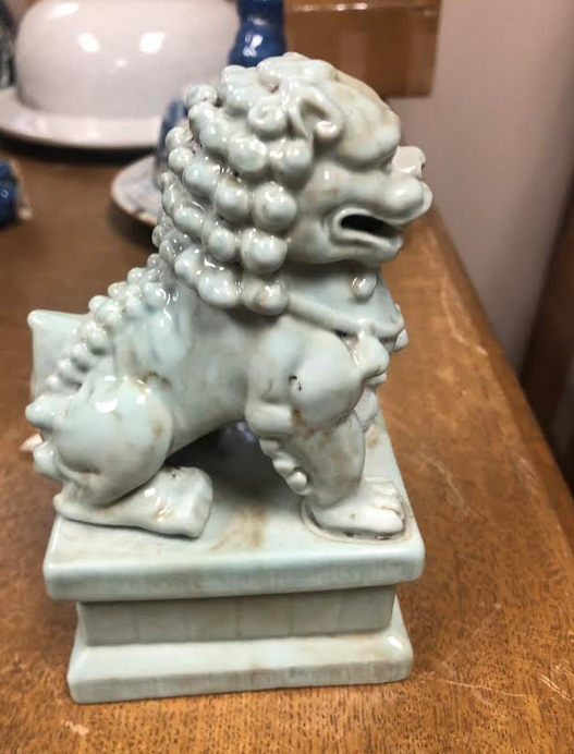 ITEM 2E A darling little pale blue foo dog, the mate broke so we have this one. Looks great on top of a stack of books