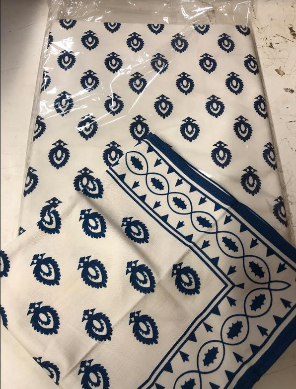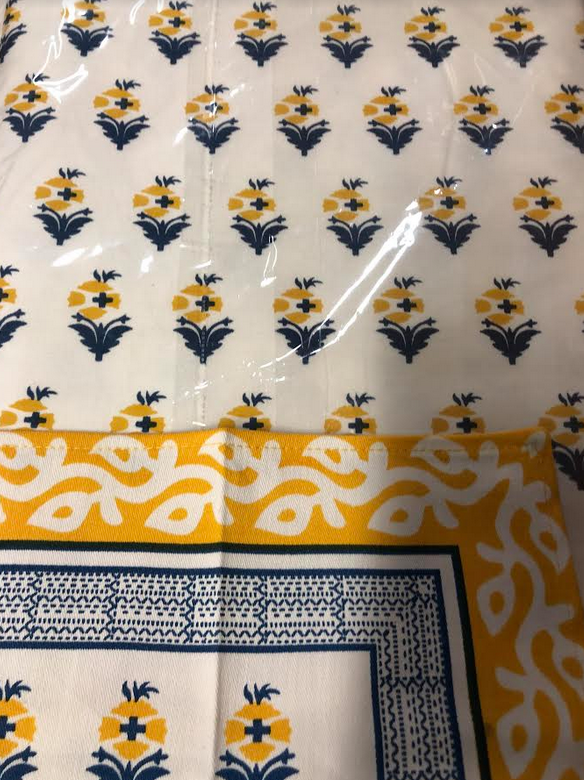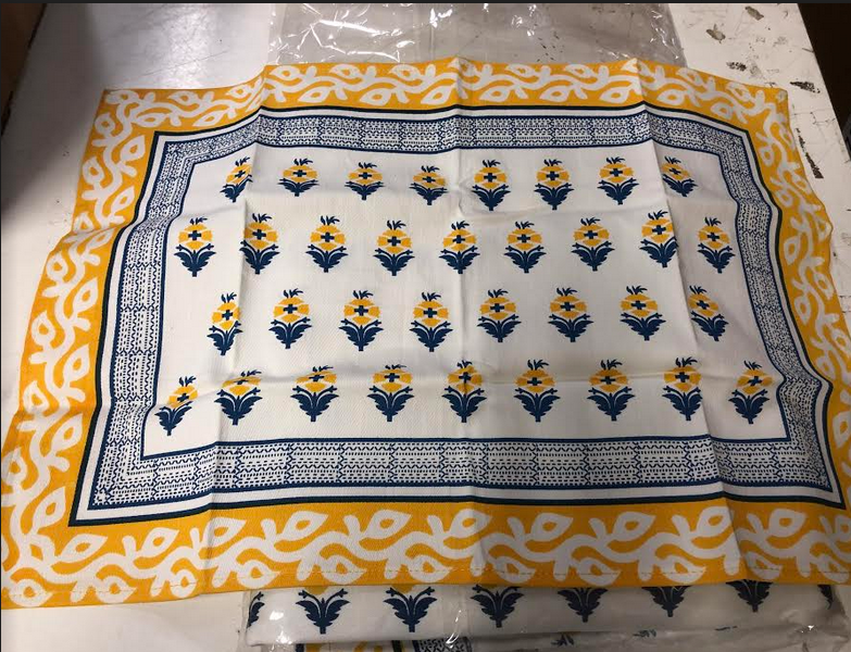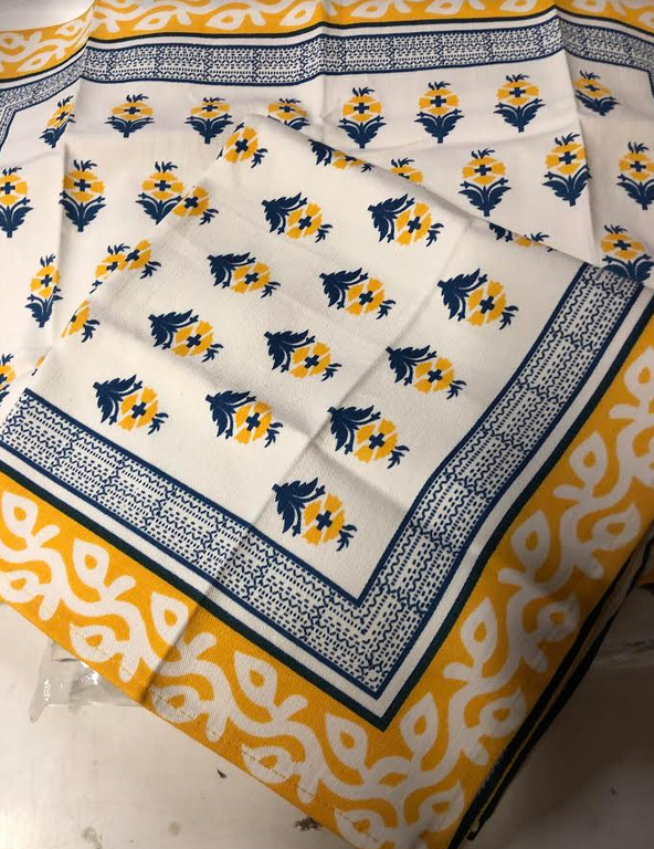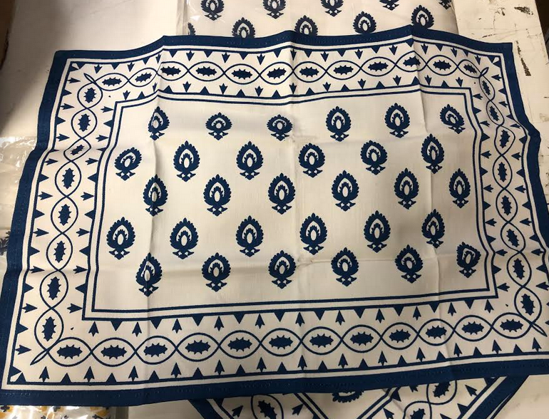 ITEM 6 These linens never made it to the shop. They are just beautiful and we have limited numbers of each design. Great for indoor or outdoor use, super stylish. They are made of a really nice high quality twill cotton fabric (made in India) and are beautiful with a really nice weight. Sorry for the pictures (taken in warehouse with bad light)