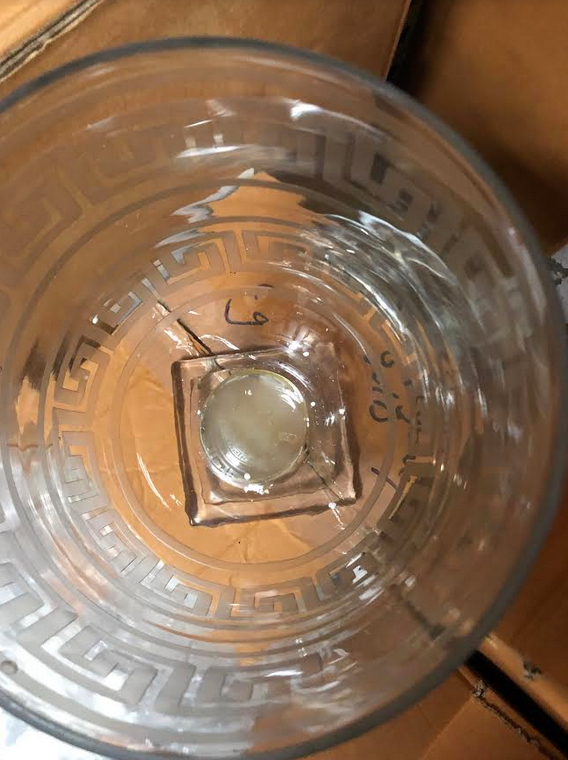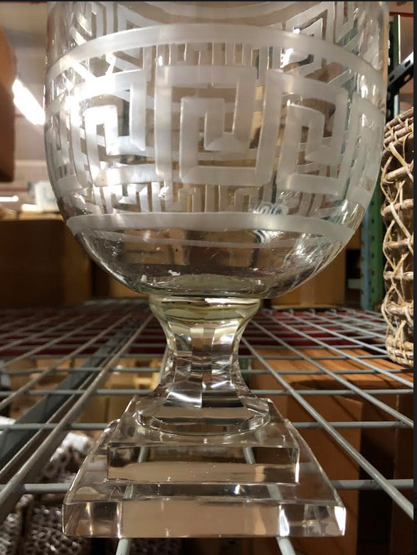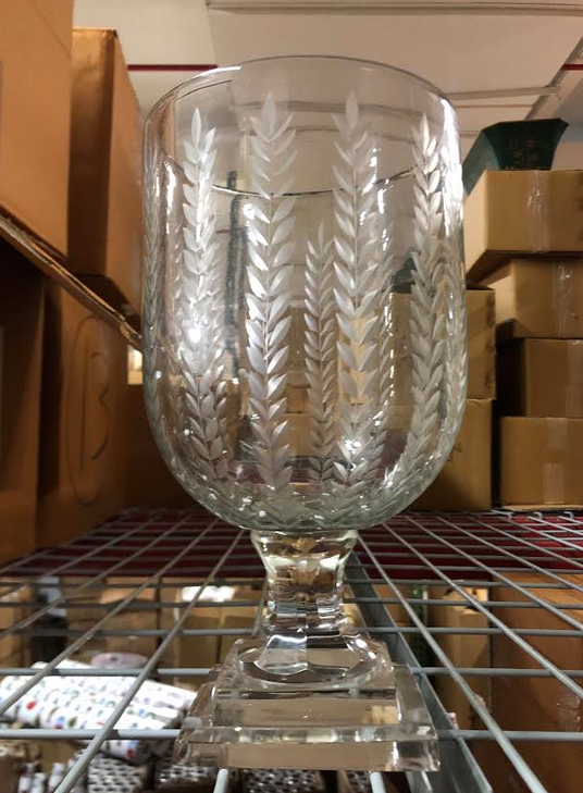 ITEM 11. We were so excited to find a box of these best selling fabulous footed hurricanes which double as a most beautiful floral vase. Some have a slight yellow marking where the glue met the base (see bel0w). It is hardly noticeable and when filled with flowers or a candle, you would never know. We are getting a big shipment of these in about 4 weeks and they will get added back to the shop at their normal selling price at that time.