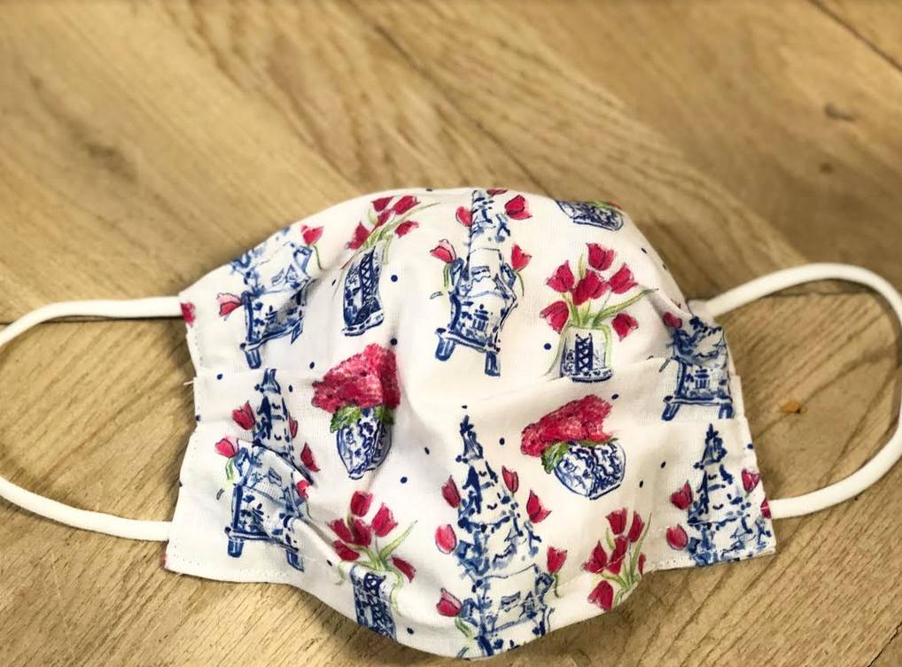 ITEM 22 Say hello to our new fabulous tulipiere mask! Its a wh0ole new world but we can still make it pretty! A prettier mask you will not find. Comes with nose wire to fix snugly and a filter pocket. 100% cotton and machine washable.