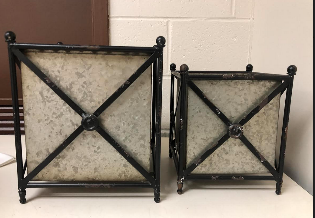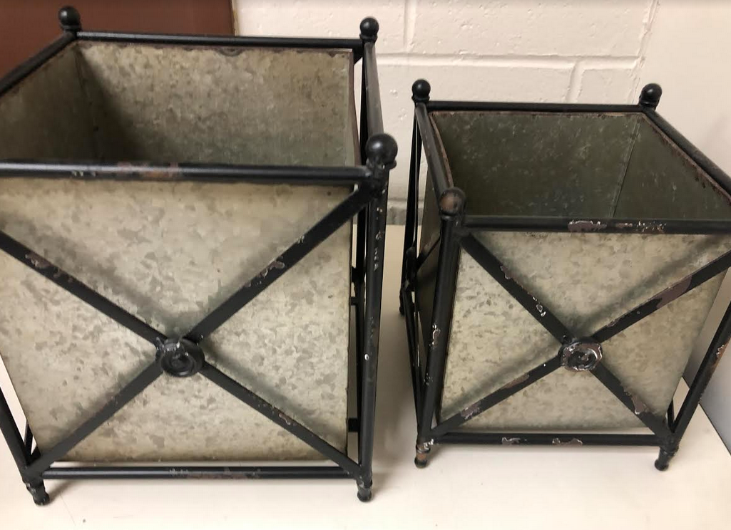 ITEM 20 Have a few of these fabulous galvanized steel and metal rustic box planters. Two sizes, gorgeous for indoors or out. Ideal for topiaries and boxwood galls.