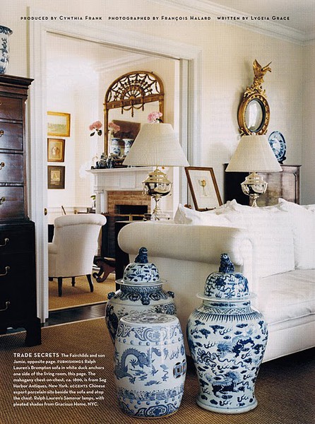 Carolyne Roehm is a master at creating all kinds ob beautiful blue and white vignettes!