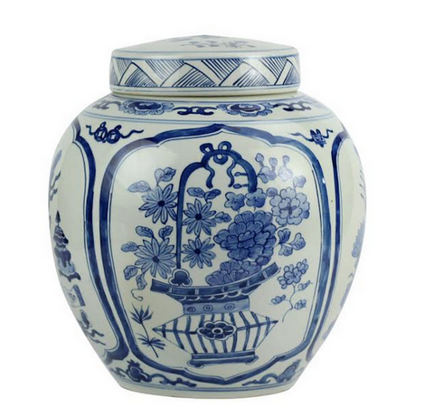 Blue and white vignettes can be on the floor too, really like the large ginger jars flanking the garden seat, gives me a good idea! HB