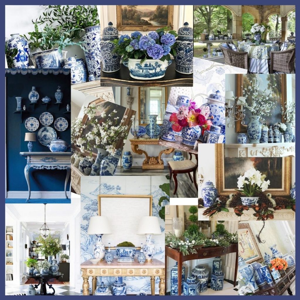 Something about blue and white always feels right. In so many styles and with literally every color mixed in. So today’s meeting is a focus on creating blue and white vignettes with porcelains. It is always a showstopping look to see a cluster of beautiful porcelains. Let’s get this meeting on the road…….and then want you to chime in your thoughts on blue and white vignettes!
