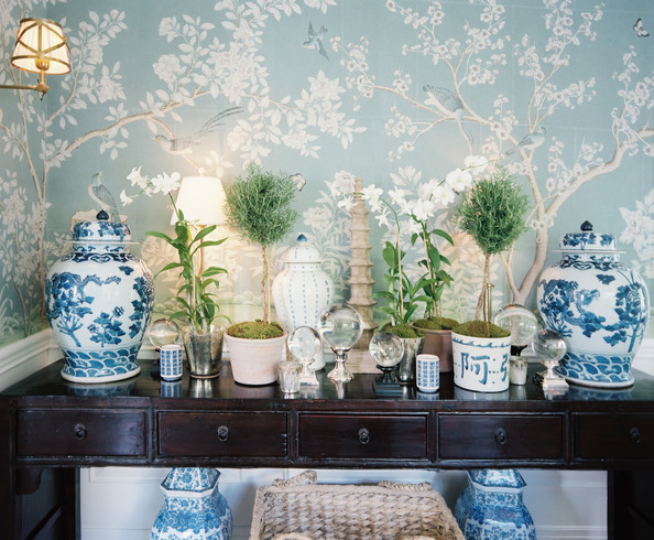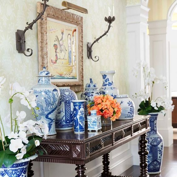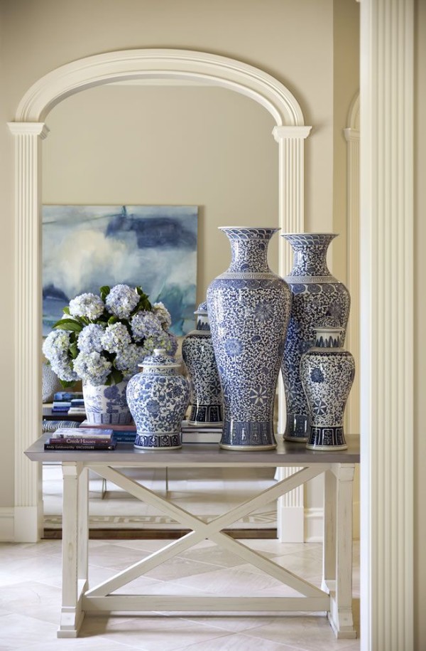 Absolutely love a center hall tale filled with blue and white, always so striking! Burnham Deisgns