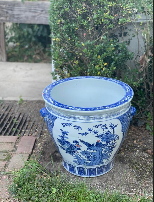 Finally a place to use my blue and white fishbowls! I immediately saw a pair framing the little door ( we have 6 left of these and as of 9am Thursday they are on special) click here