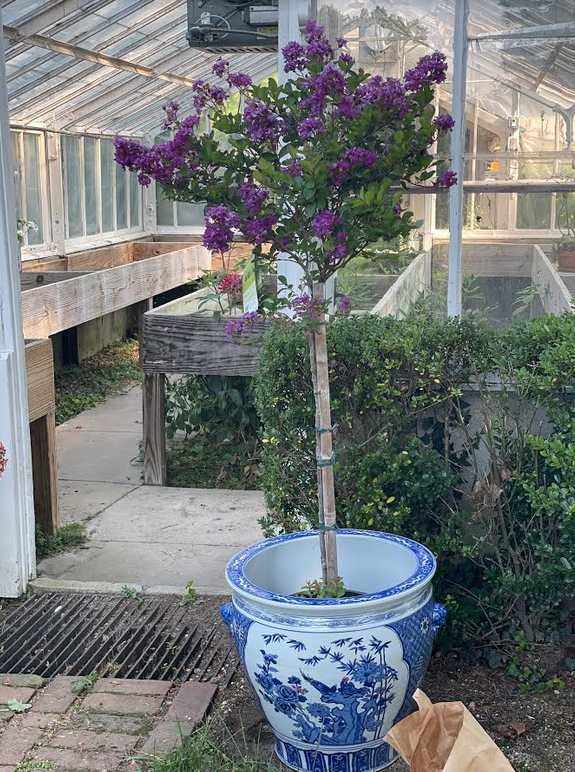 Bought these pretty myrtle topiaries in this pretty pink/purple color, they take full sun and re bloom plus you know how much I love topiaries!