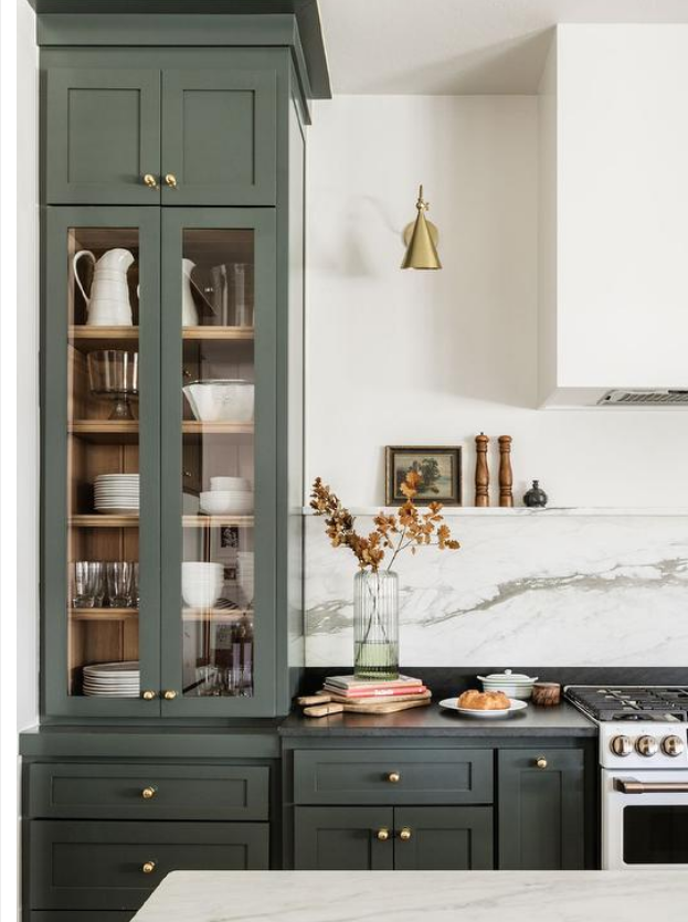 I have to say I’m drawn to the mossy green and dark blue kitchens more than the white (which are lovely on their own). Color is always warm and cozy……all white is a little too hospital-y for. me.