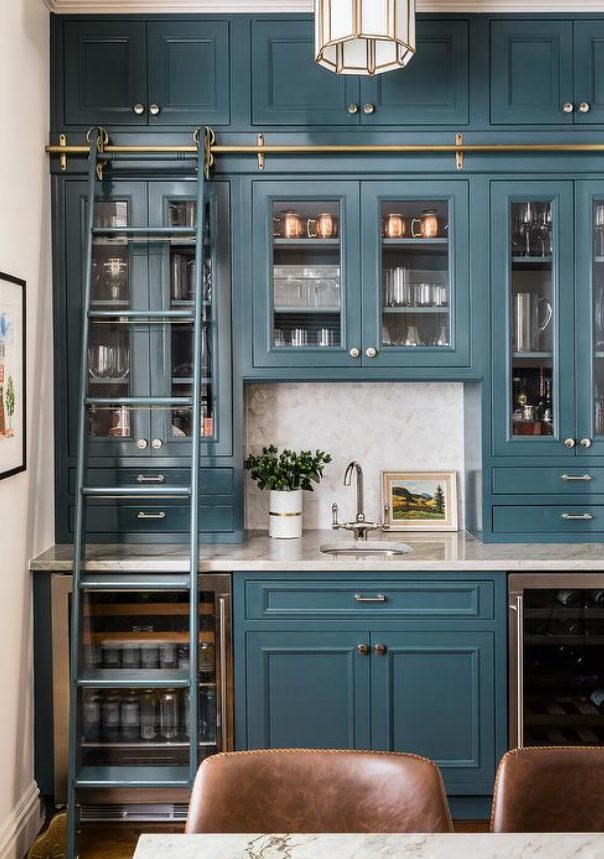 This is so fabulous and so elegant! I love the color combination, the glass doors offset the heaviness of the color, 12 Chairs Interiors