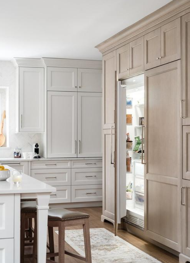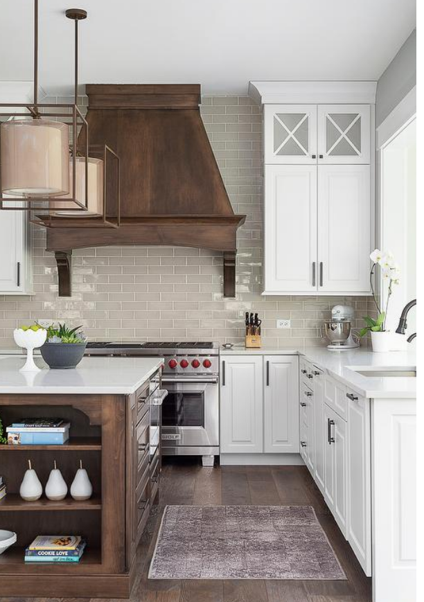 LC Interiors combined a walnut toned wood with white cabinets, thoughts?