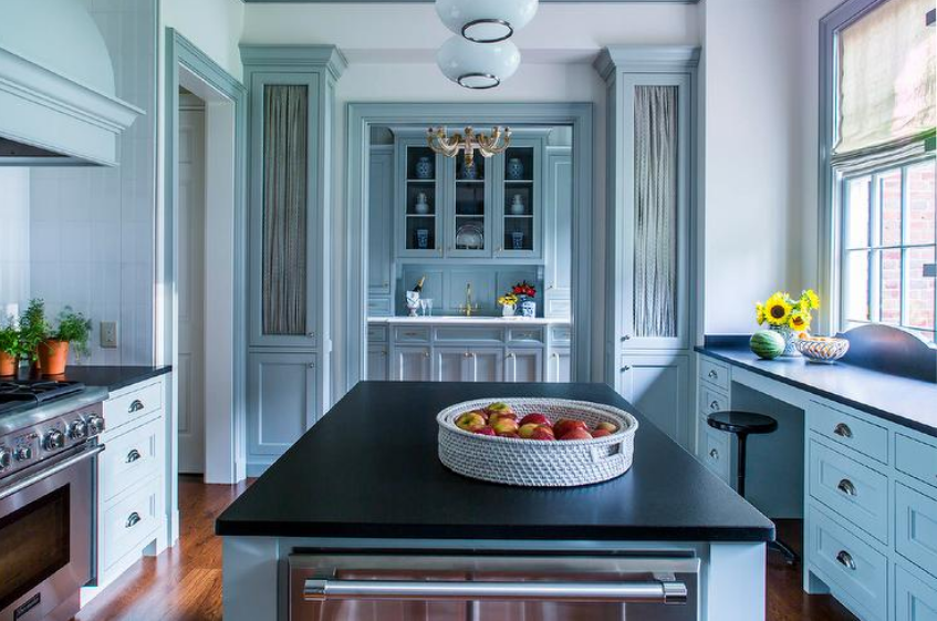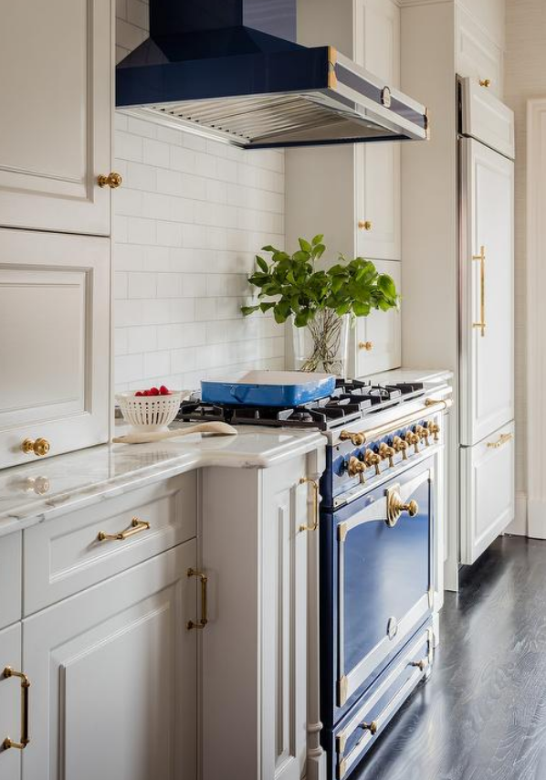 And sometimes you let the range be the shining star, such as this blue beauty in this elegant kitchen by Liz Caan