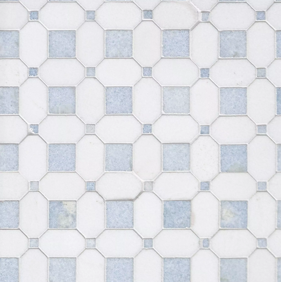 I would love to use this Celeste blue/white marble basket weave in either the powder room or one of the full baths, love it!