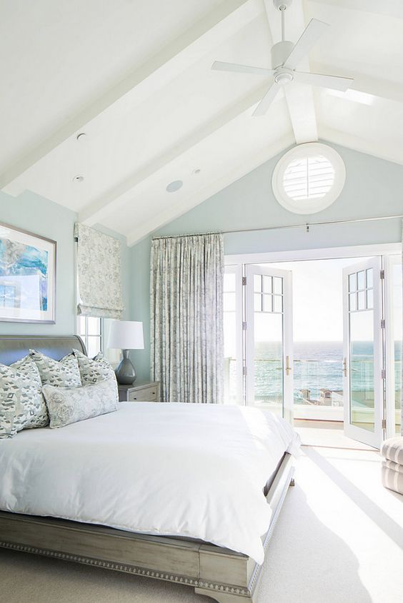 Love the feeling of this bedroom, my favorite colors and it’s so light and airy. One thing you will notice is they kept the walls white but instead painted the trim a pretty blue, interesting idea worth considering!