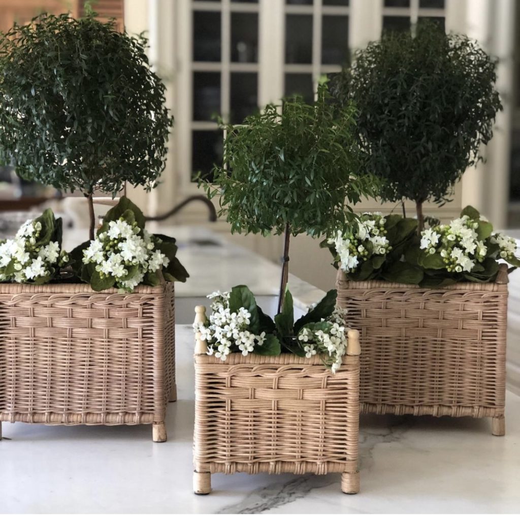 I’m looking at the box (4 & 13) and hex (8) wicker planters, I have a preserved boxwood topiary that needs a new home. Seeing the photo of the Rosemary topiaries really helped me visualize how mine might look!