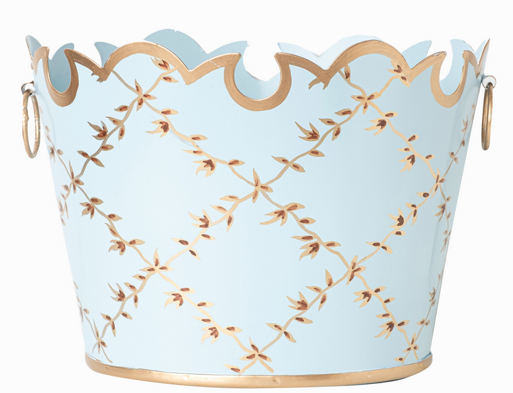 ITEM 7 Our wonderful medium scalloped tole planters are back in 3 gorgeous colors. These are the perfect size for orchids, topiaries, fresh flowers, ferns, etc….