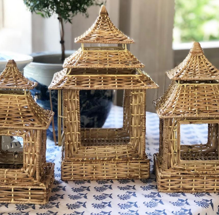I love all things wicker, especially the pagodas and planters. In the South, we enjoy our wicker year round. So beautiful.