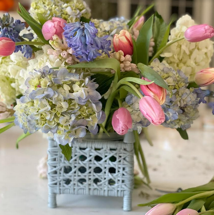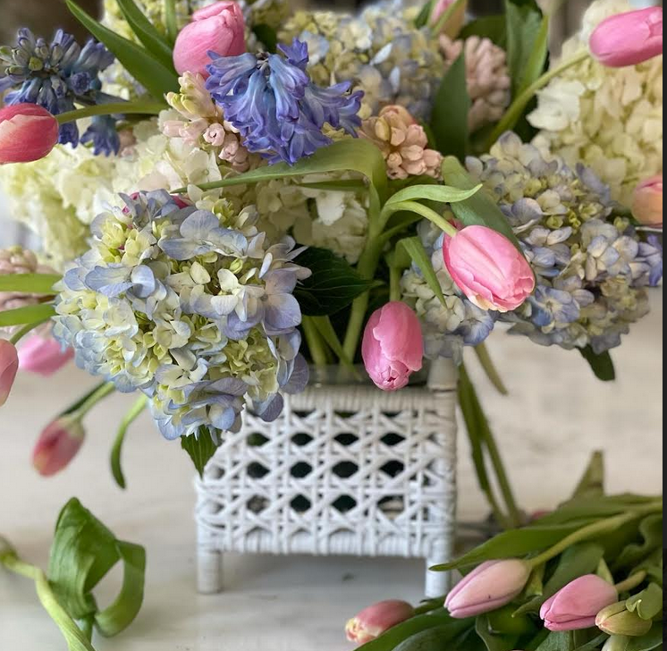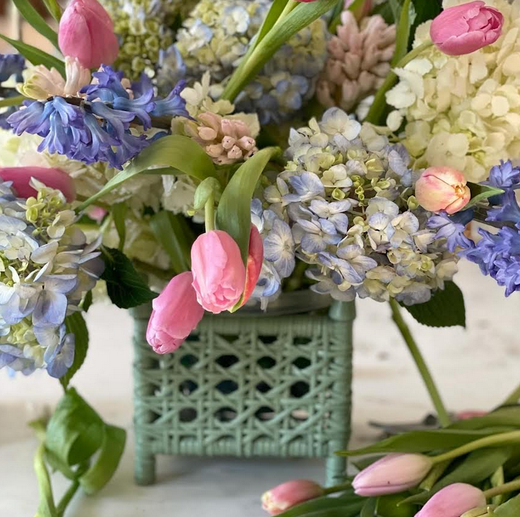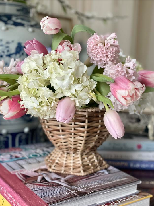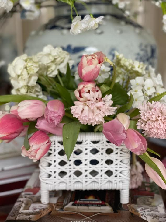 Love the small wicker planters in the pastel colors. Such a gorgeous look as we head into Spring!